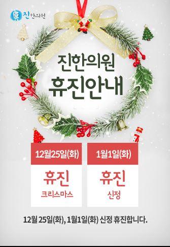 12월 25일 화요일 크리스마스와, 1월 1일 화요일 신정에는 휴진입니다.