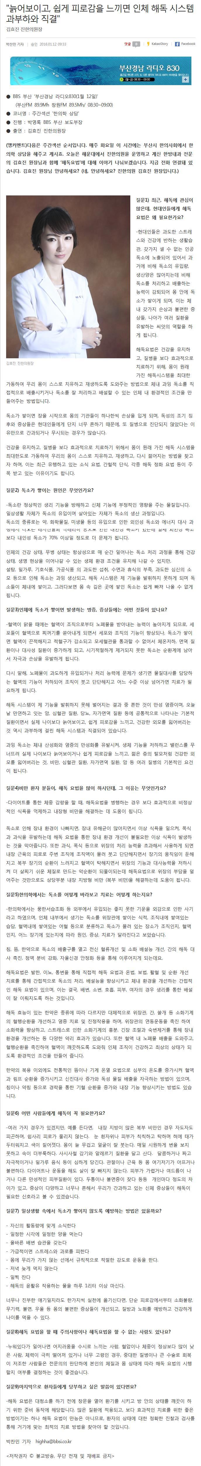 10 | [news1] `내 몸이 건강해지는 해독요법` KNN 메디컬24시 .. | | 2015.11.03 | 25,279 |