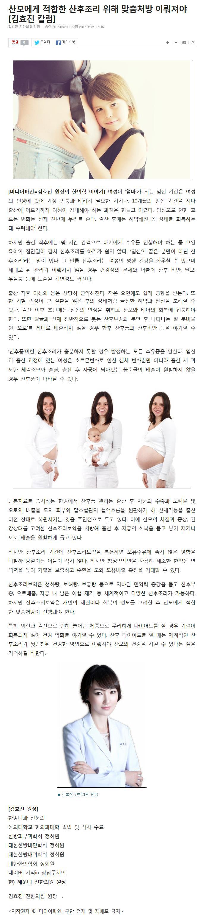 17 | [미디어파인] 산모에게 적합한 산후조리 위해 맞춤처.. | | 2016.08.24 | 23,271 |