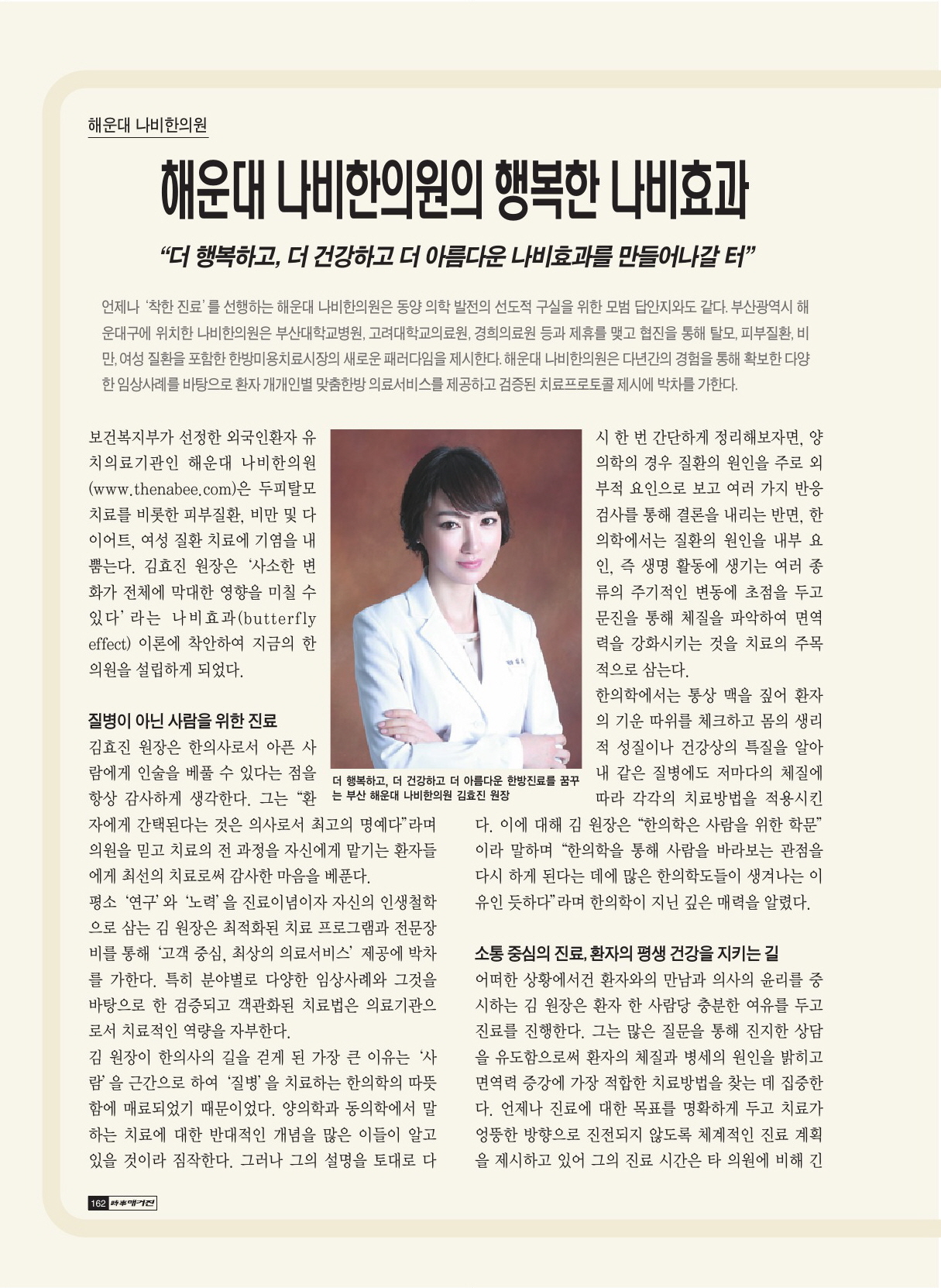 이번에 저희 나비한의원이 시사매거진이 선정한 '100대 명의'에 뽑히게 되었습니다.