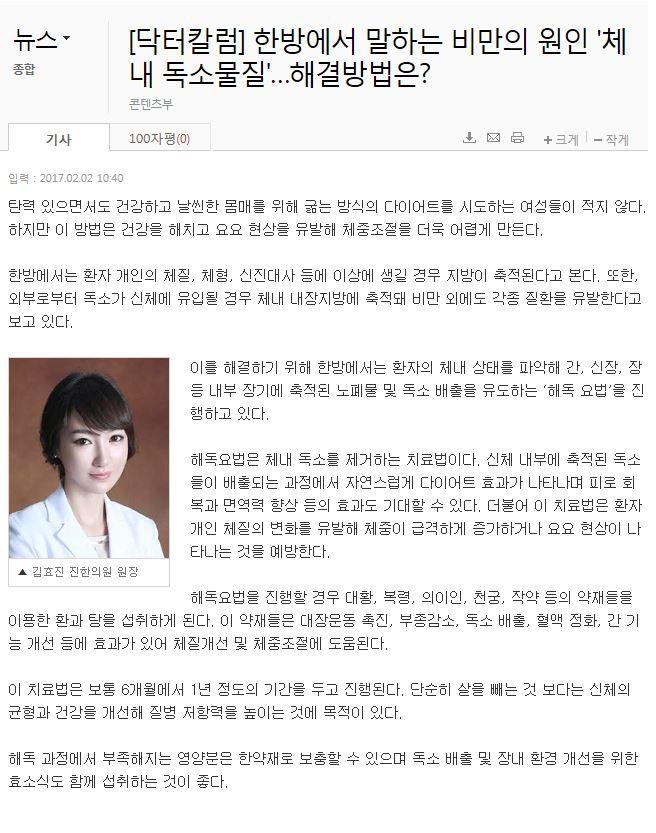 23 | [조선비즈] 한방에서 말하는 비만의 원인 체네 독소.. | | 2017.02.02 | 21,916 |