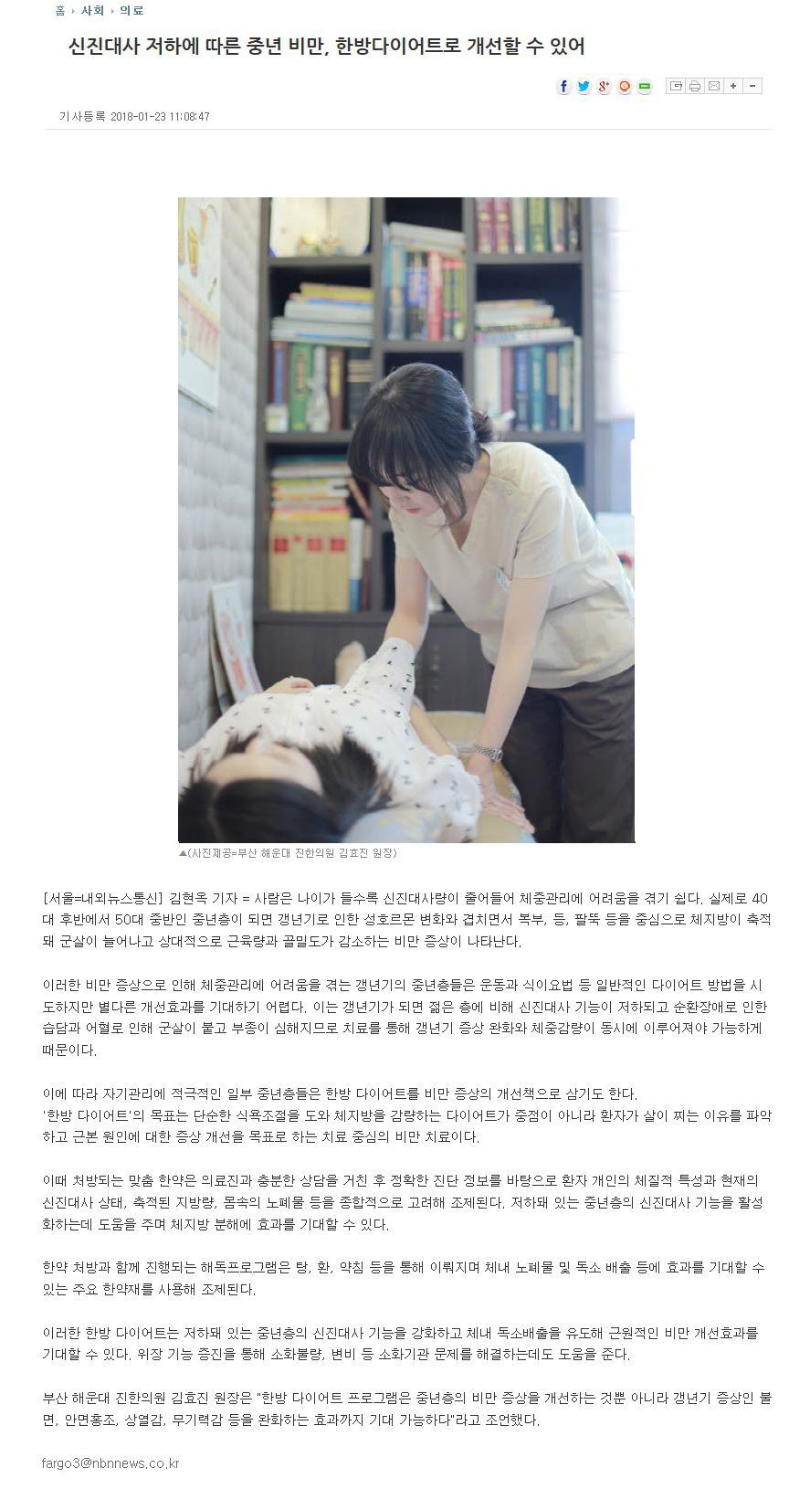 32 | [내외뉴스] 신진대사 저하에 따른 중년 비만, 한방다.. | | 2018.01.24 | 22,812 |