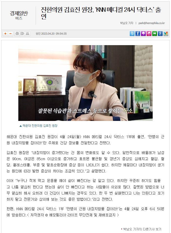 4월 24일 월요일 KNN 메티컬 24시 닥터스 1부에서 “만병의 근원 내장지방을 잡아라!”