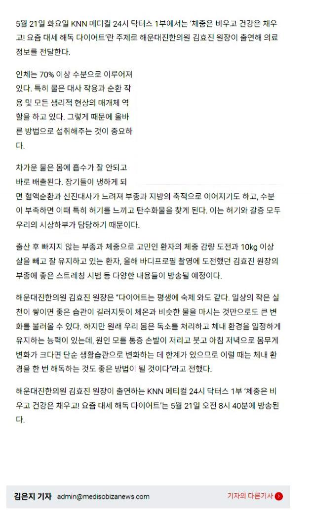 48 | 김효진 원장, KNN `메디컬24시 닥터스` 건강한 일상의 .. | | 2021.11.29 | 23,785 |